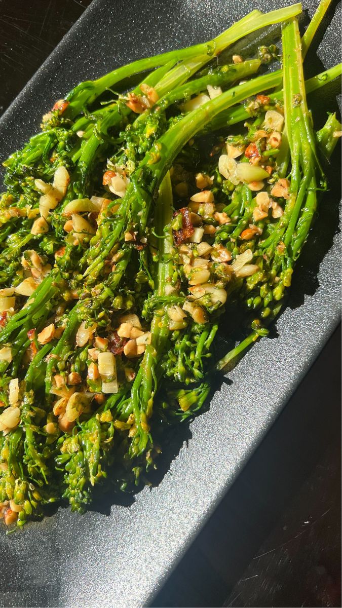 I created this Brown Butter Hazelnut Broccolini recipe when planning my contribution to an intimate dinner with some friends. One is a fantastic chef who owns one of the hottest restaurants in Los Angeles. I will spare his modesty by not mentioning his name or restaurant, but so you know, the pressure was on! I was assigned a side dish and a cocktail. Mastering a side dish can be tricky because it’s not the star of the plate, however, it still needs to be memorable. Naturally, I wanted to impress him, and I did! I considered making something I’ve tried at a restaurant but decided to challenge myself and go within.
